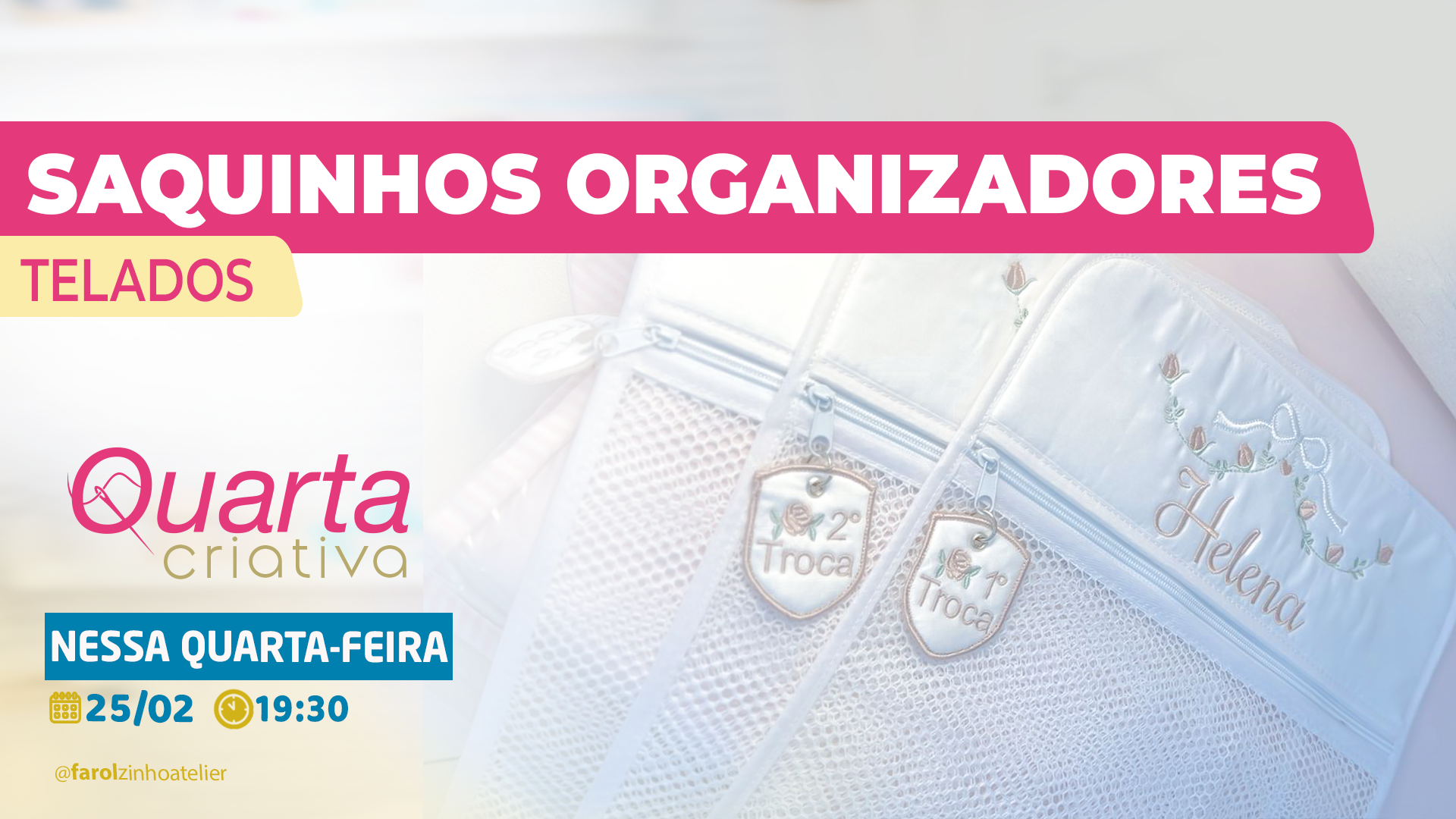 Nessa semana você aprende o passo a passo do Saquinho Organizador Telados, uma aula prática de uma peça maravilhosa, que você vai aprender para fazer ai no seu ateliê.